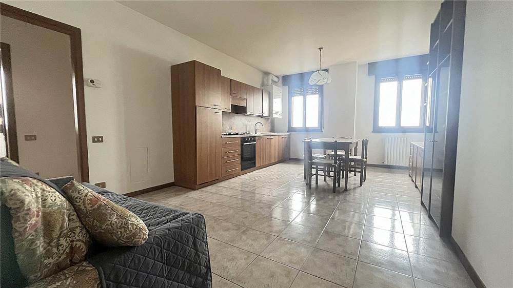Bilocale arredato in bella palazzina composto da: ingresso, soggiorno con angolo cottura, disimpegno, camera matrimoniale, bagno e garage grande per tre auto di circa mq 45.
